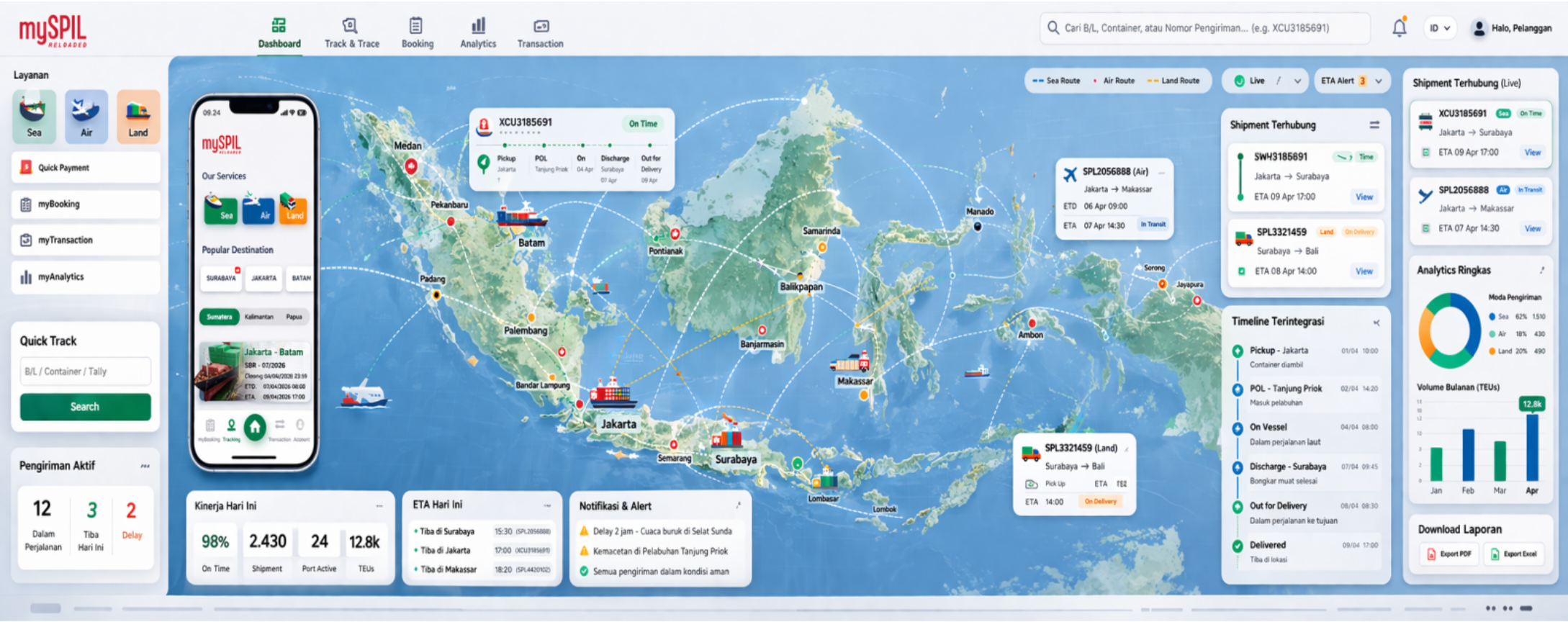 Track & Trace bukan hanya fitur tapi pengalaman digital yang memudahakan pengguna memahami perjalanan logistik secara realtime, cerdas dan terpercaya. Dengan sistem ini, pengguna mudah mengakses berbagai informasi penting mulai dari status pengiriman, jadwal kapal, dan pembayaran yang dapat dilakukan secara online tanpa harus memahami proses yang kompleks.