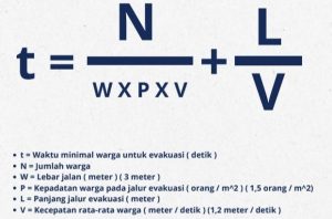 ​Keunggulan dari panduan yang disusun ini adalah penggunaan rumus matematis untuk memprediksi waktu tempuh minimal (t) bagi warga untuk mencapai titik aman. Perhitungan ini mempertimbangkan variabel jumlah warga (N), lebar jalan (W), kepadatan warga di jalur evakuasi (P), panjang jalur (L), serta kecepatan rata-rata jalan kaki warga (V).