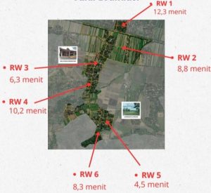 ​RW 6 (Rawan Longsor): Terletak di perbatasan Yogyakarta dan Gunung Kidul, wilayah ini memiliki potensi tanah longsor. Dengan 226 warga dan jarak 550 meter ke lapangan, waktu evakuasi diperkirakan 8,3 menit.
