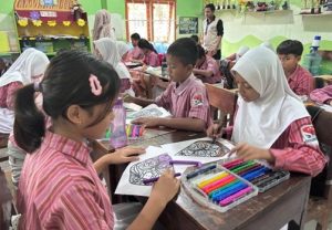 Para siswa diberikan gambar gunungan wayang untuk dihias menggunakan berbagai teknik dan perpaduan warna sesuai dengan imajinasi masing-masing. Aktivitas mewarnai ini tidak hanya bertujuan mengembangkan kreativitas anak, tetapi juga melatih ketelitian, kesabaran, serta keterampilan motorik halus siswa.